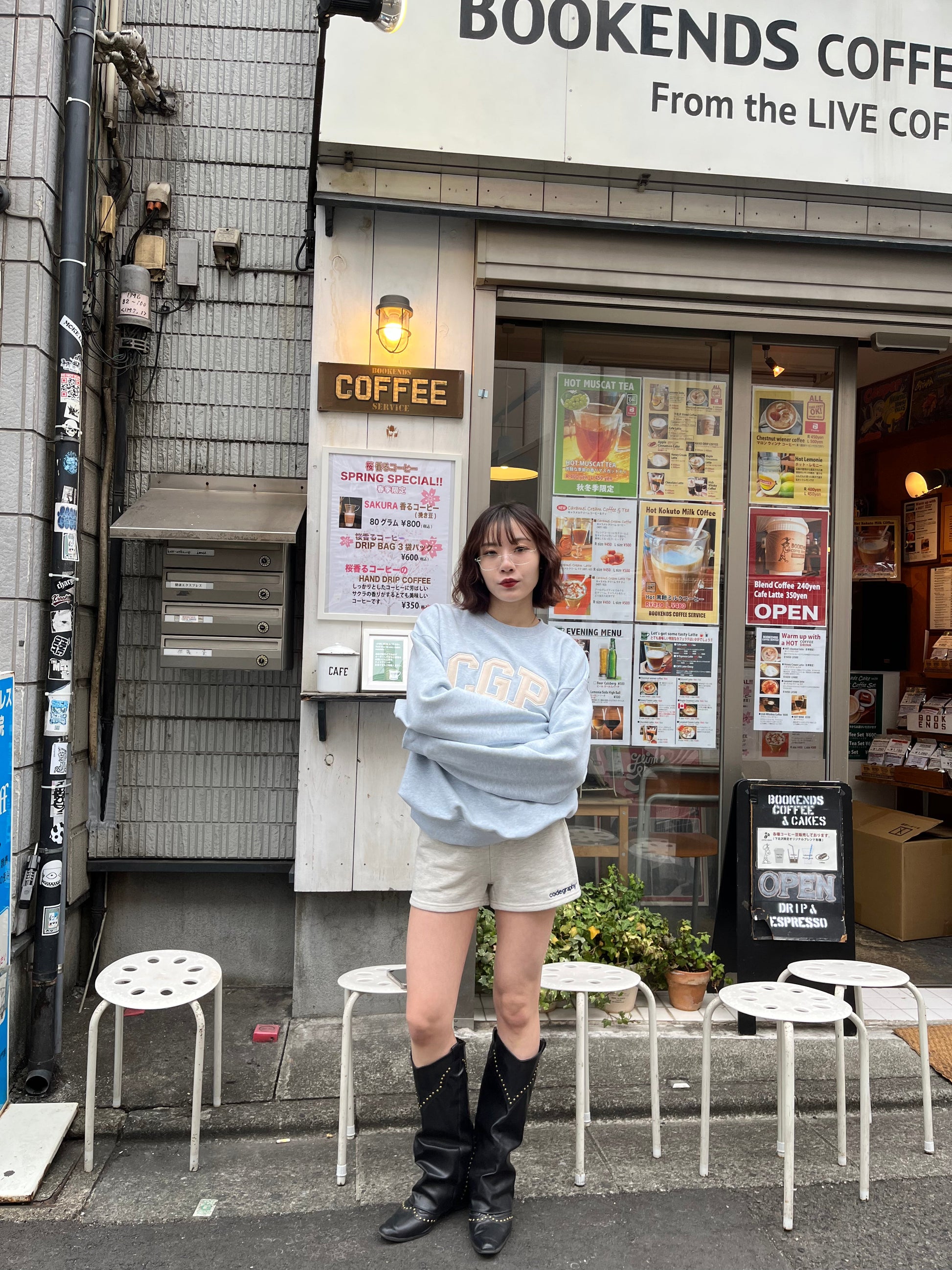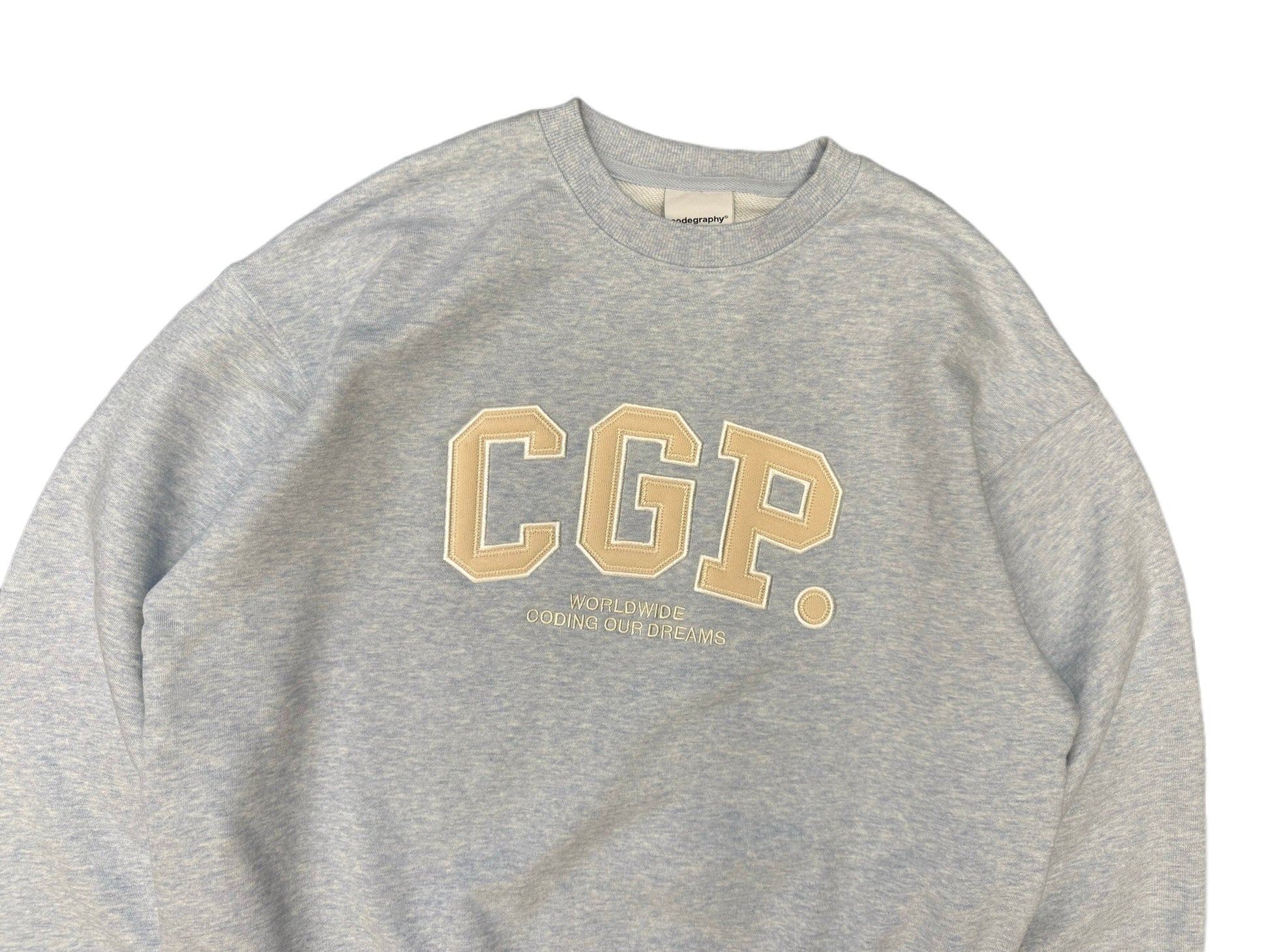 フロントの「CGP.」ロゴが特徴的なクルーネックスウェット。