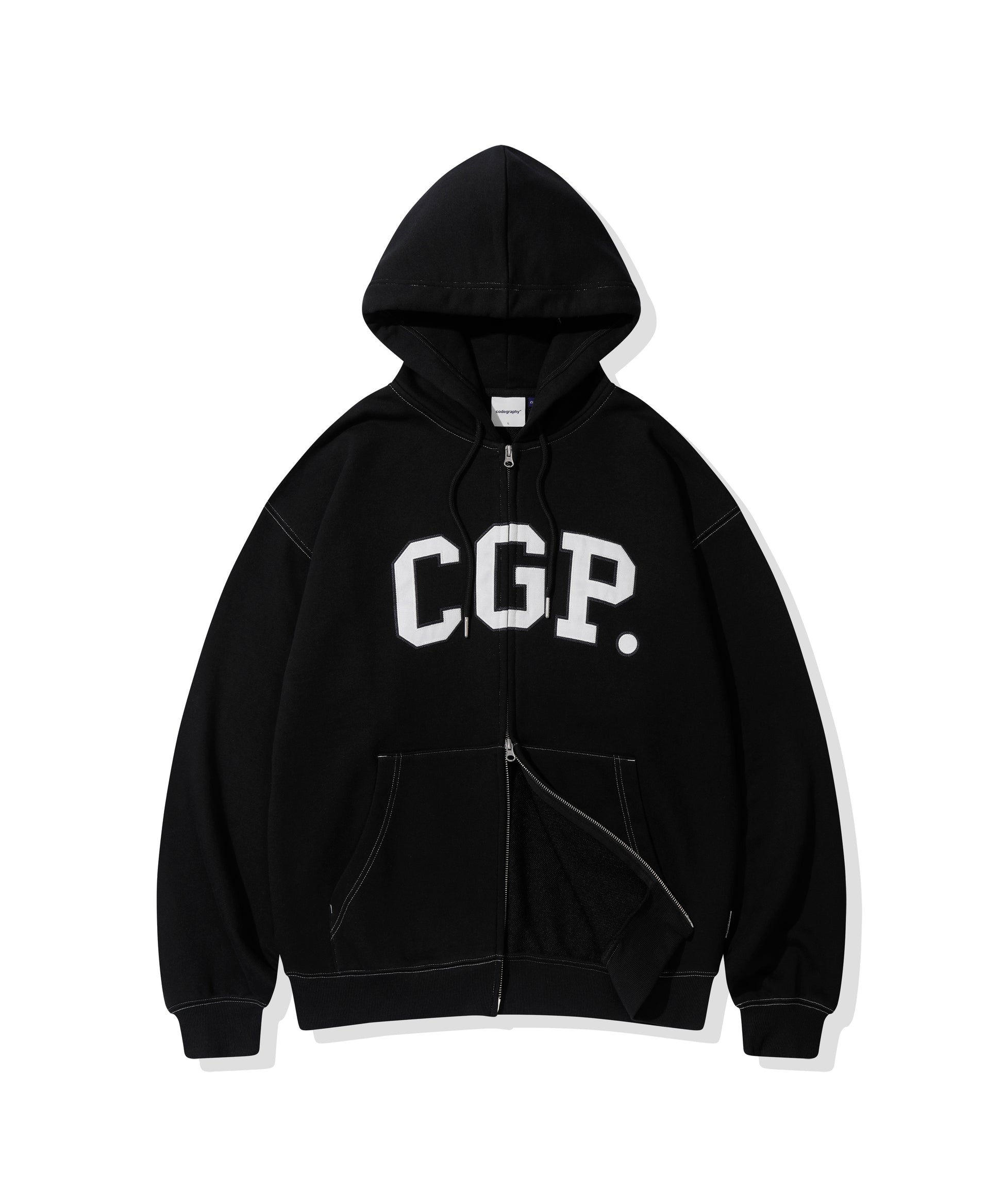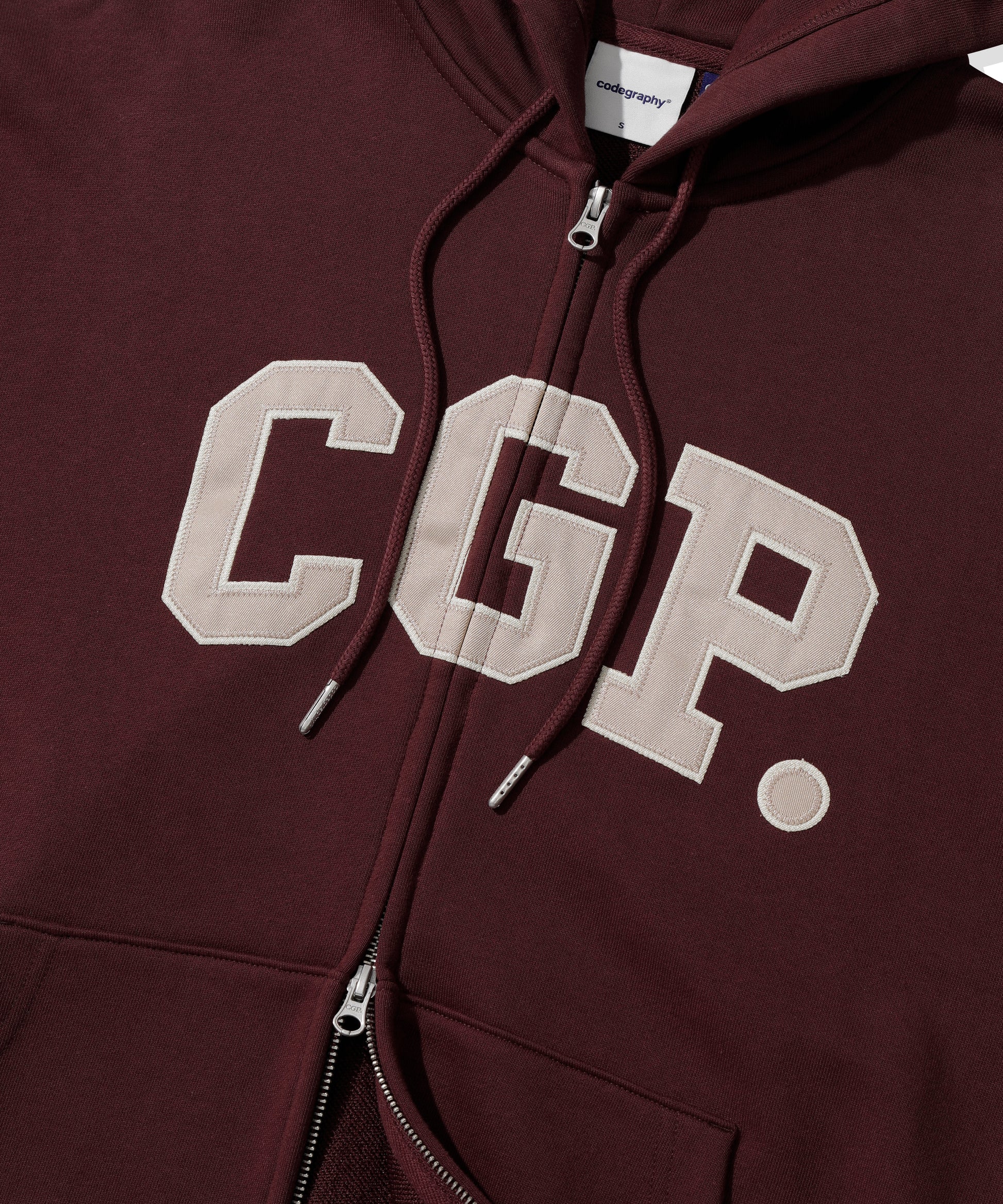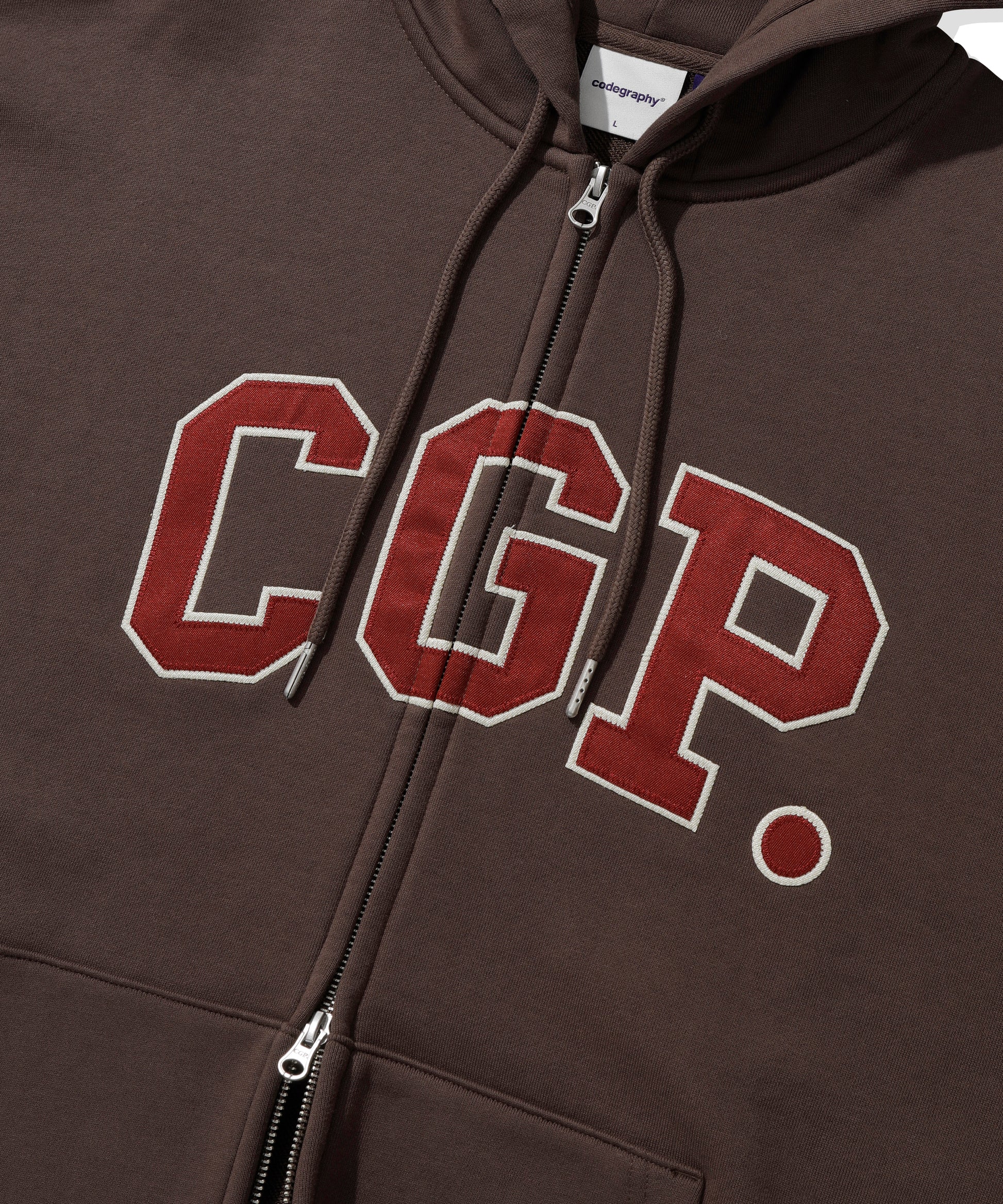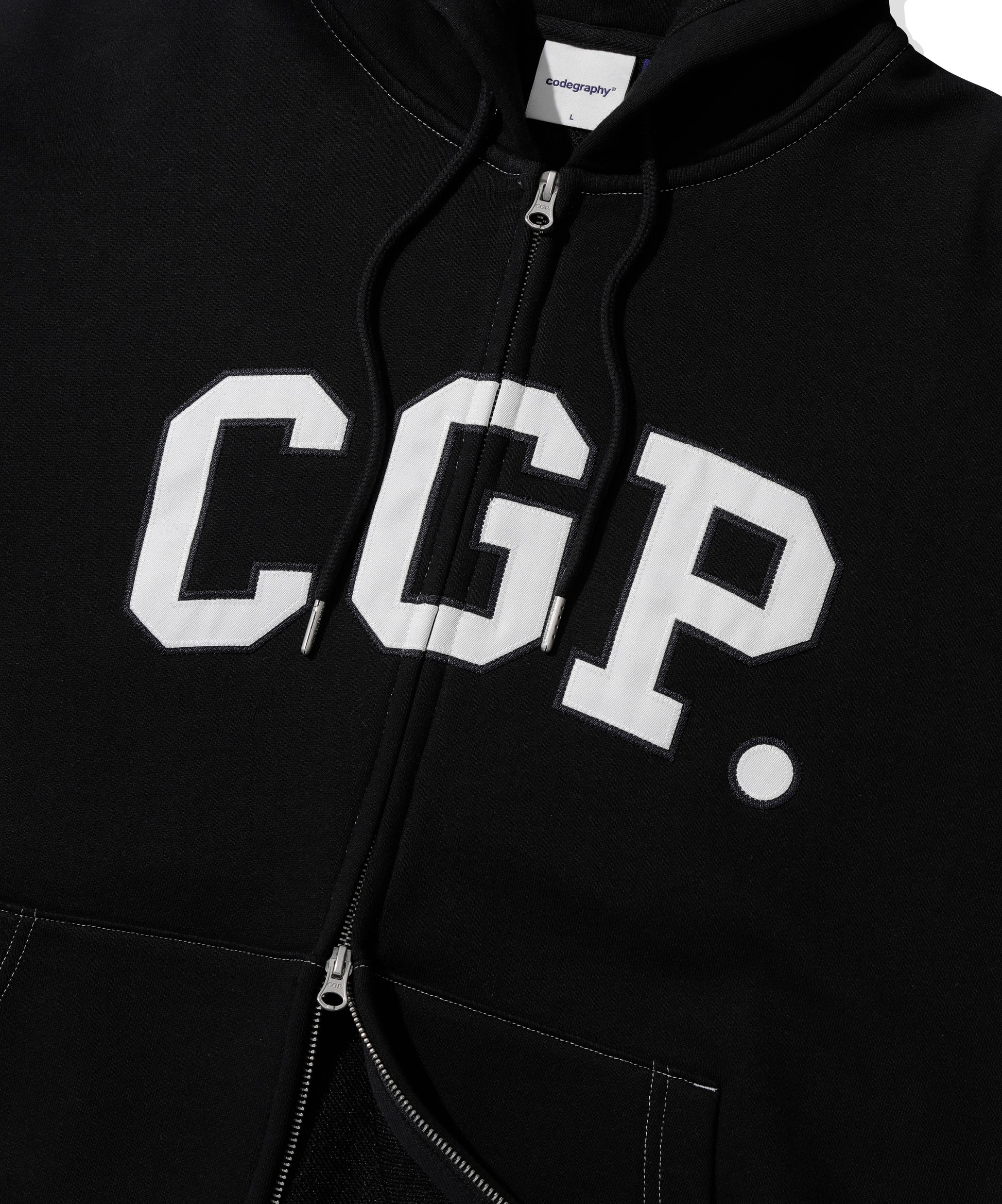 フロントの「CGP.」ロゴが特徴的なジップフーディ。