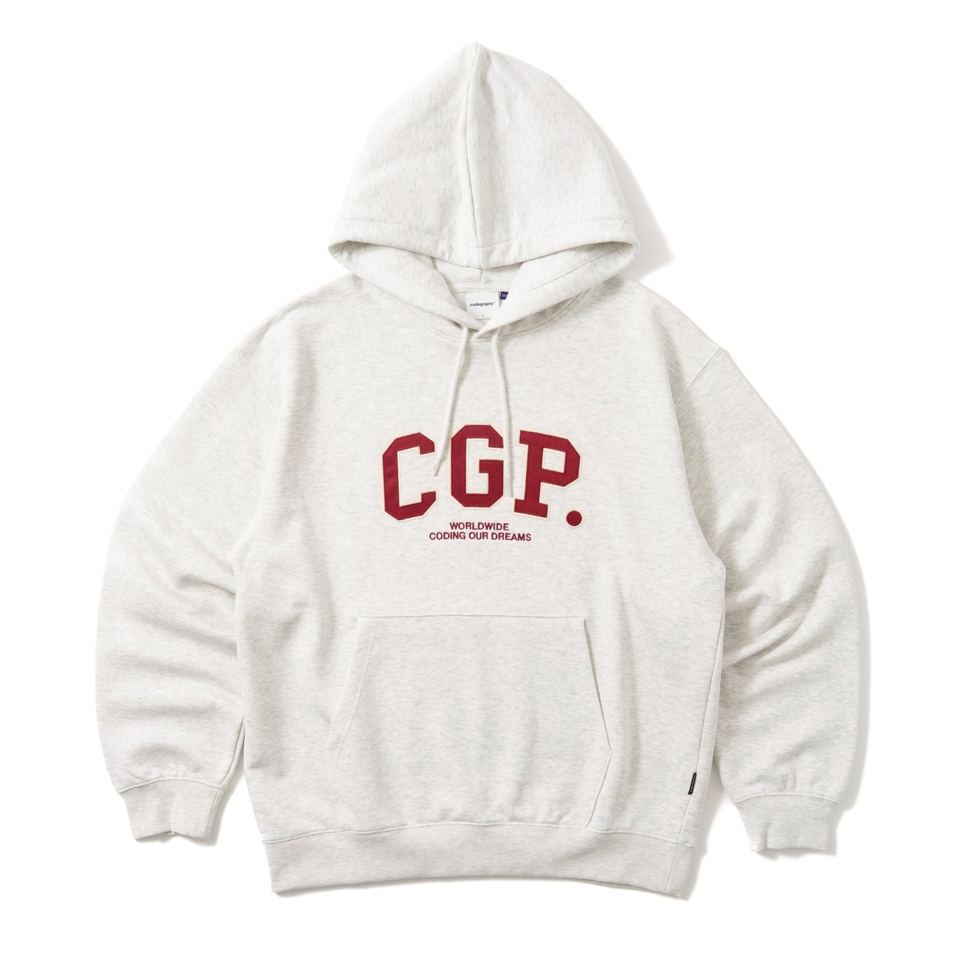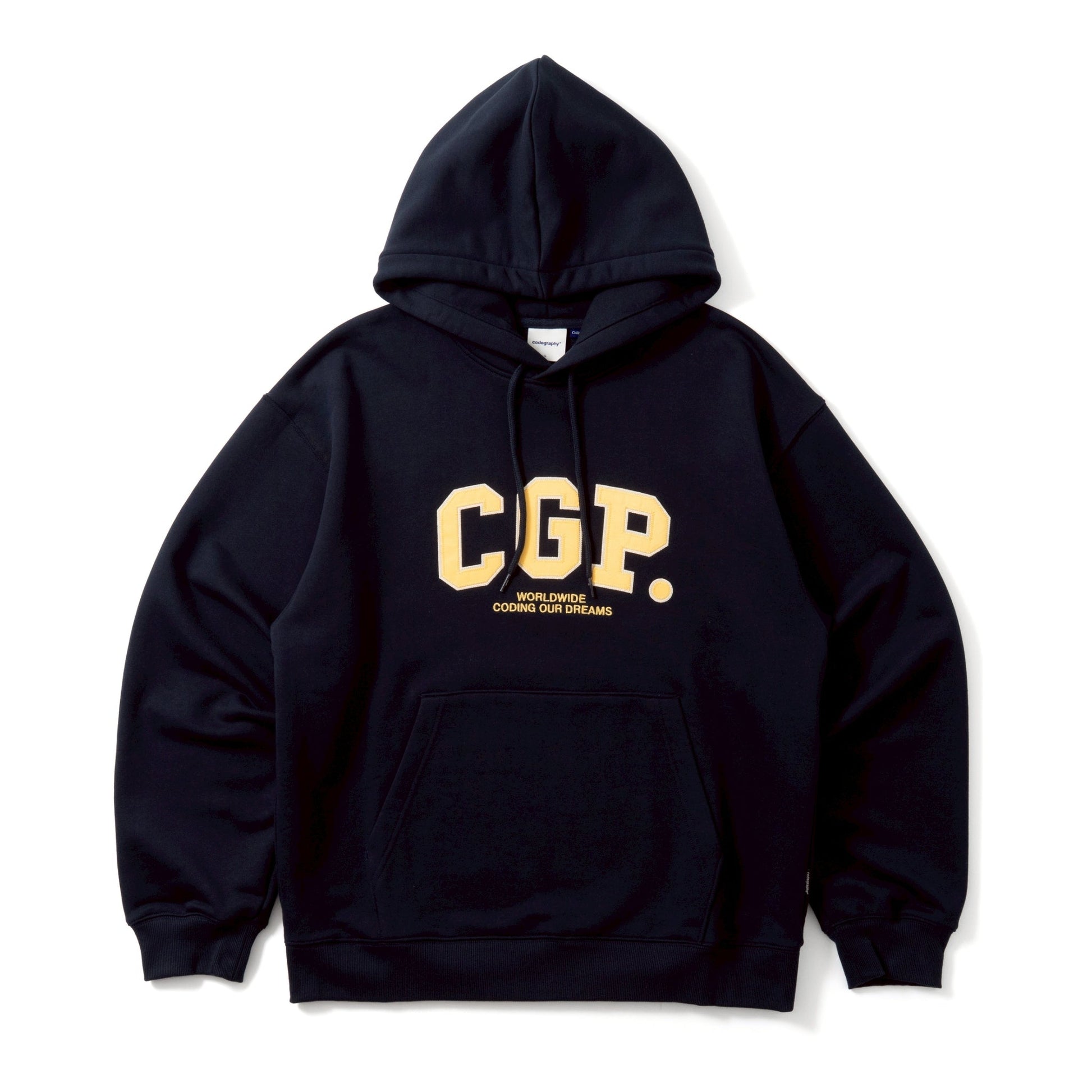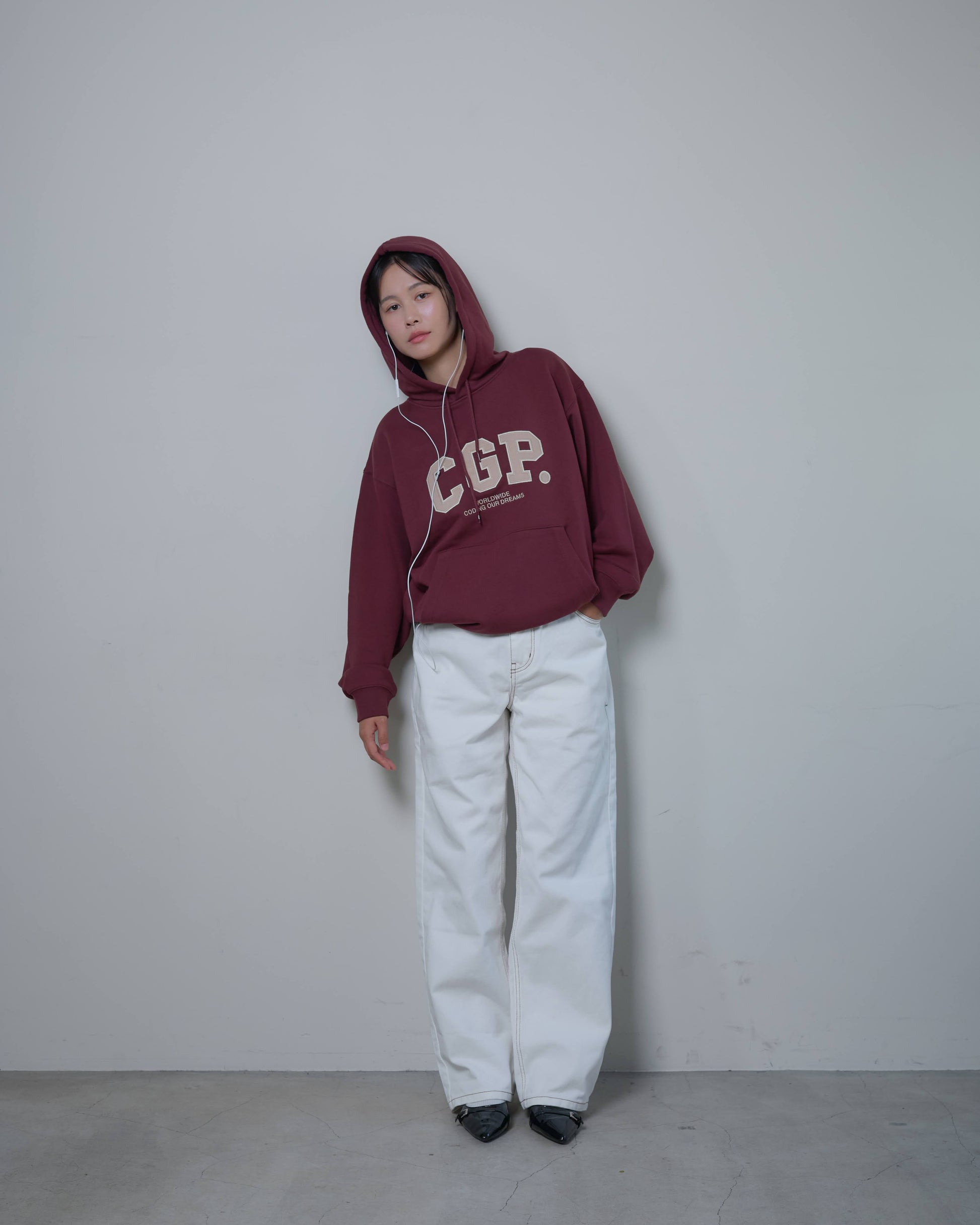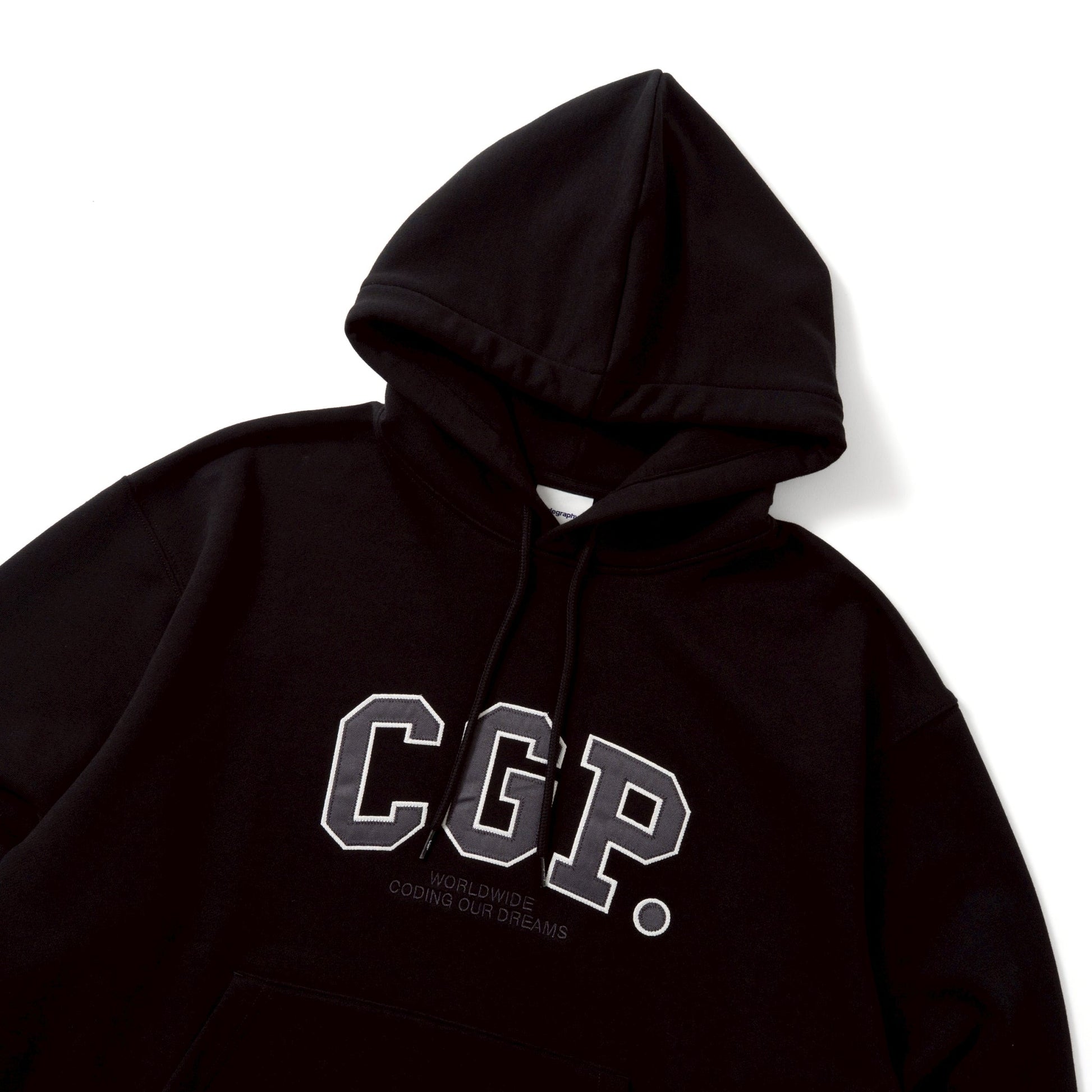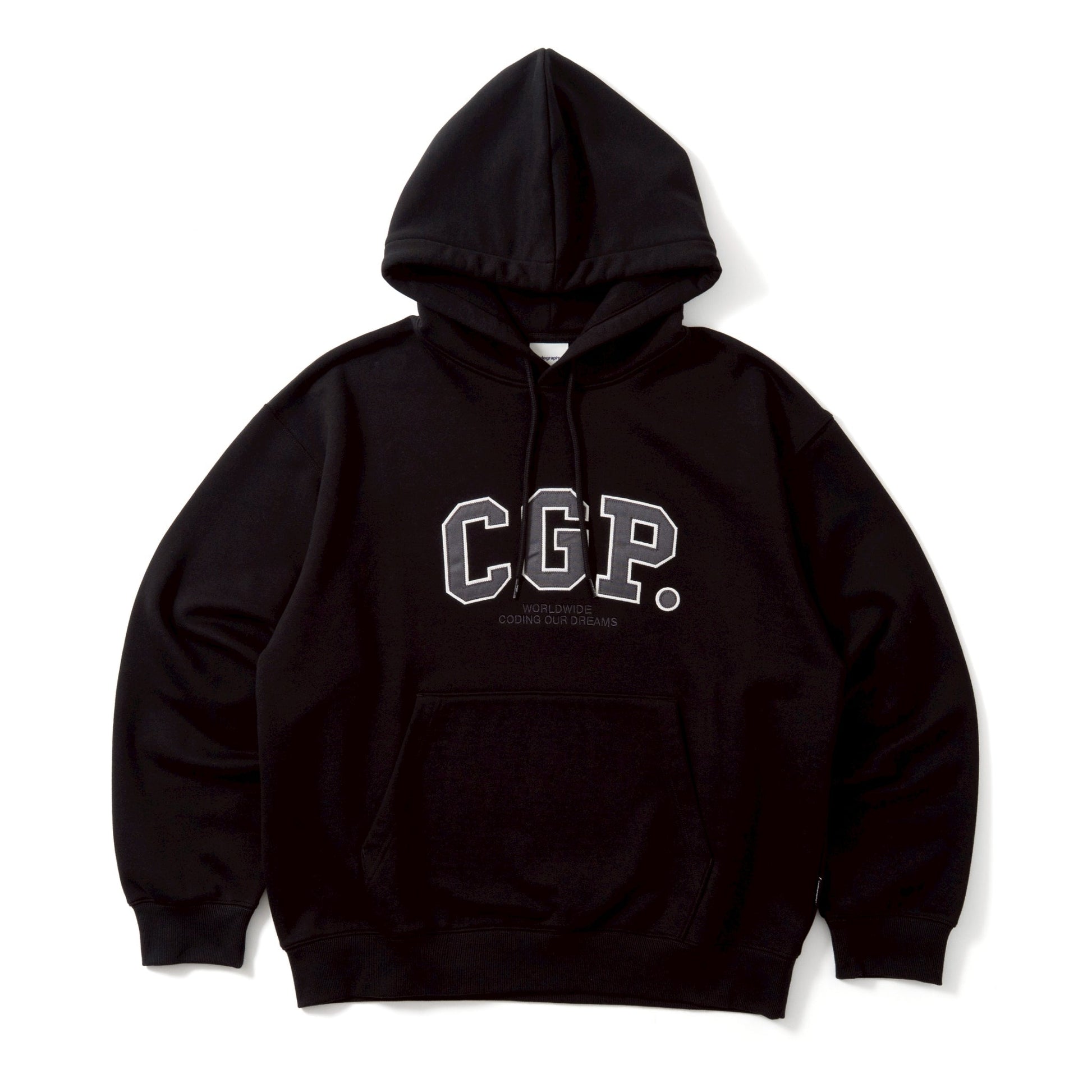 フロントの「CGP.」ロゴが特徴的なフーデットパーカー。