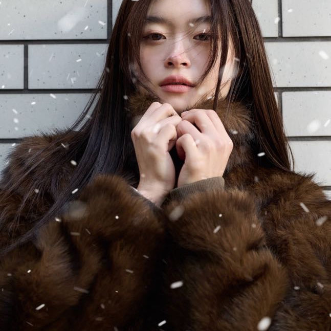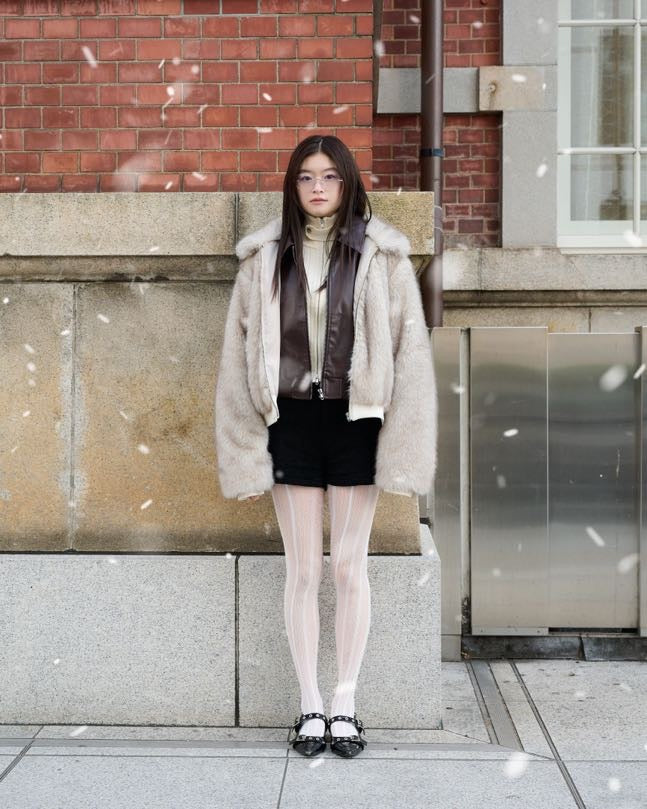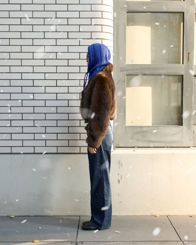 ふんわりとボリュームのあるフェイクファー素材を使用した、シーズンムードたっぷりのアウター。