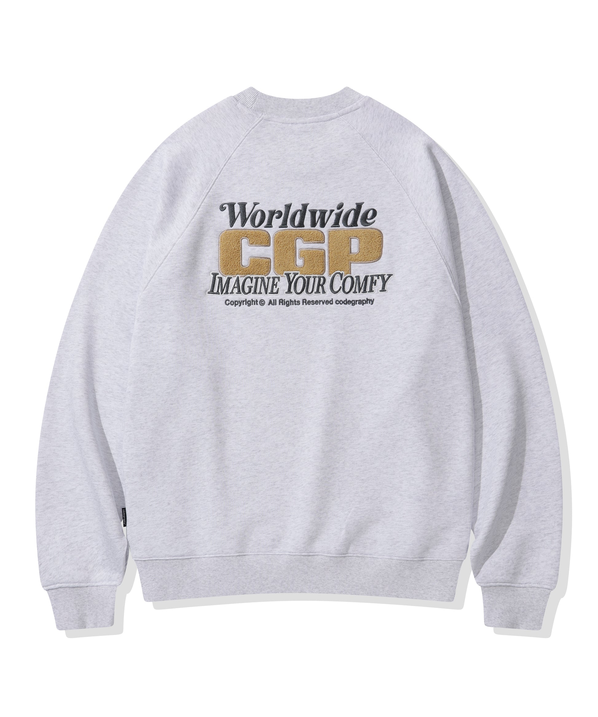 CGPのサガラワッペンを前面にはワンポイント、背面にはビッグロゴで施されたスウェット。