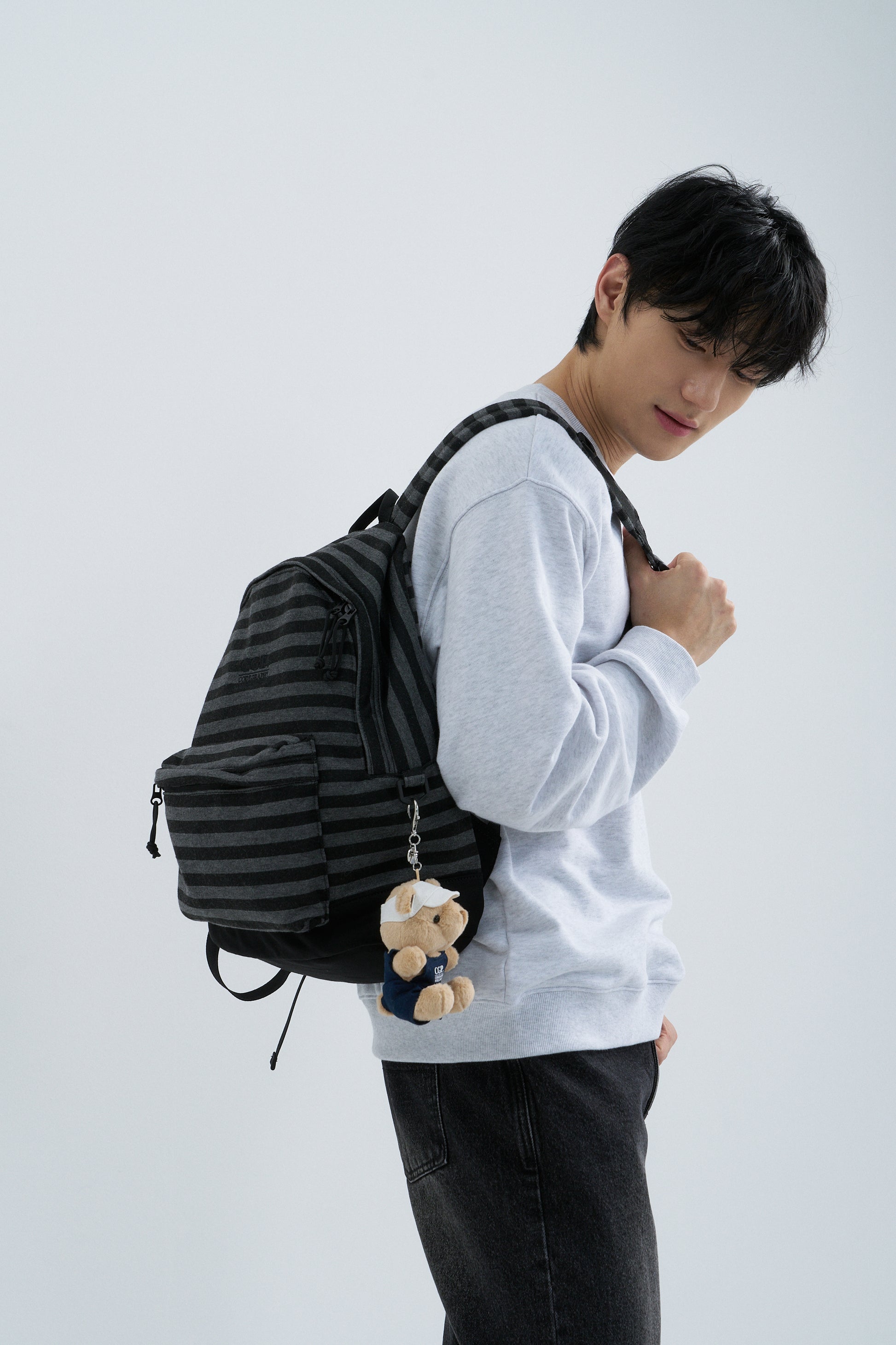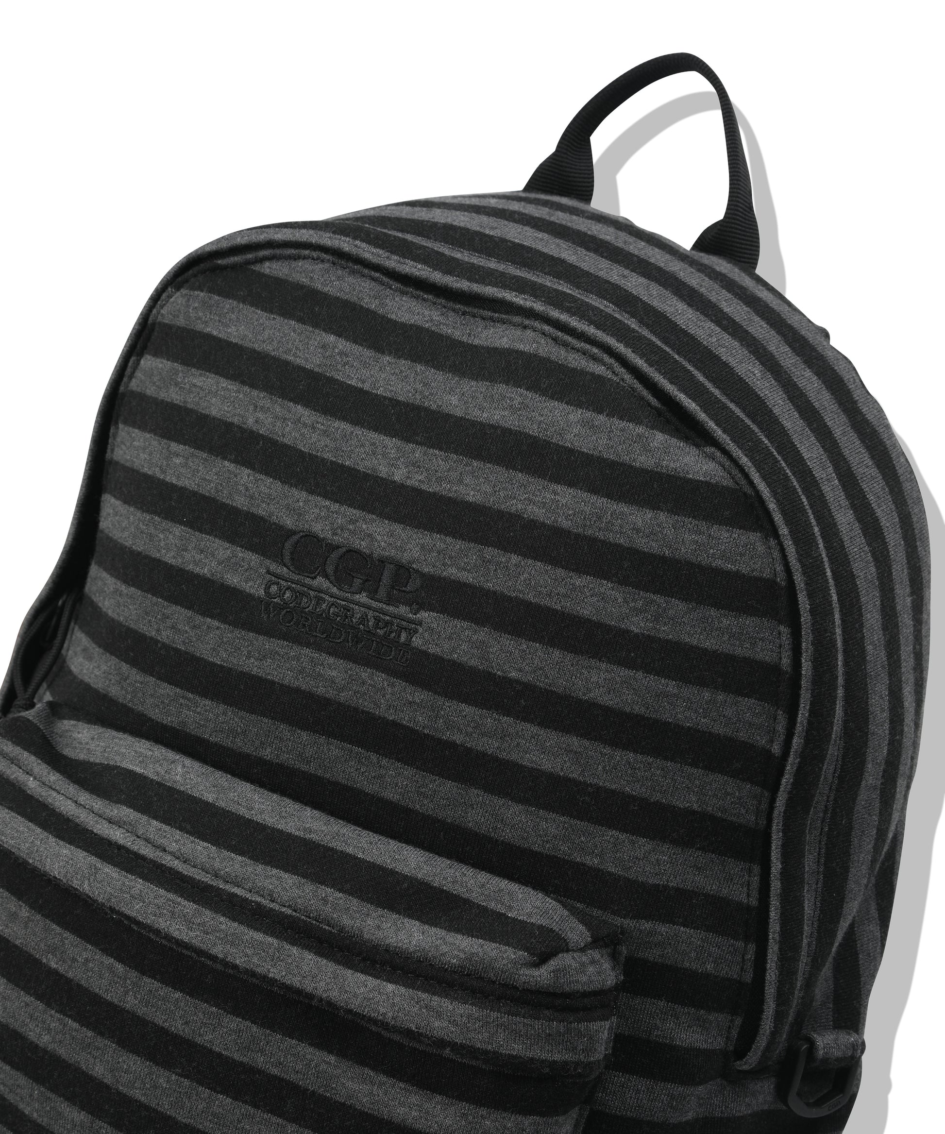 ストライプ柄のデザインにスクエアロゴを施した、デイリーなバッグパック。