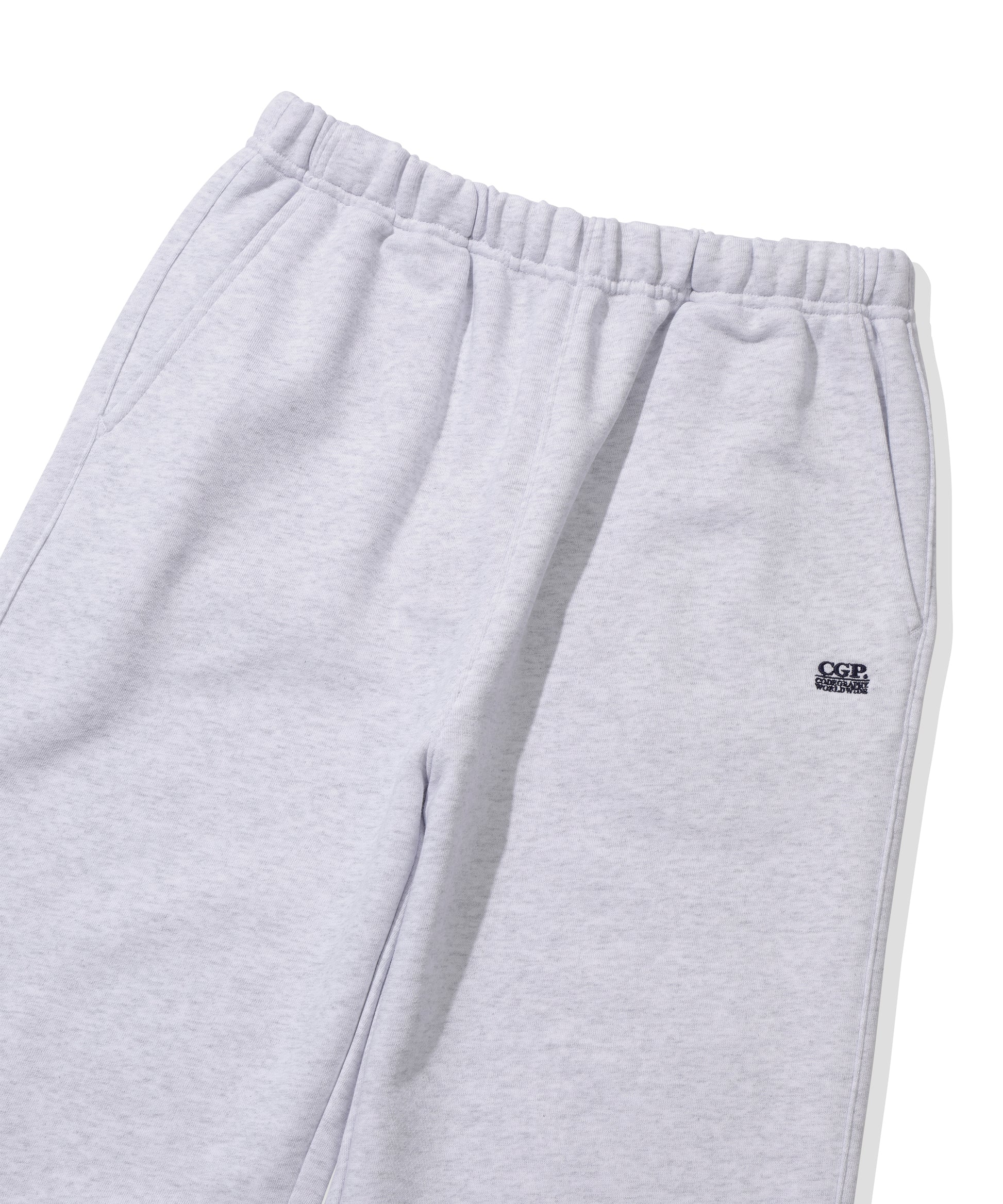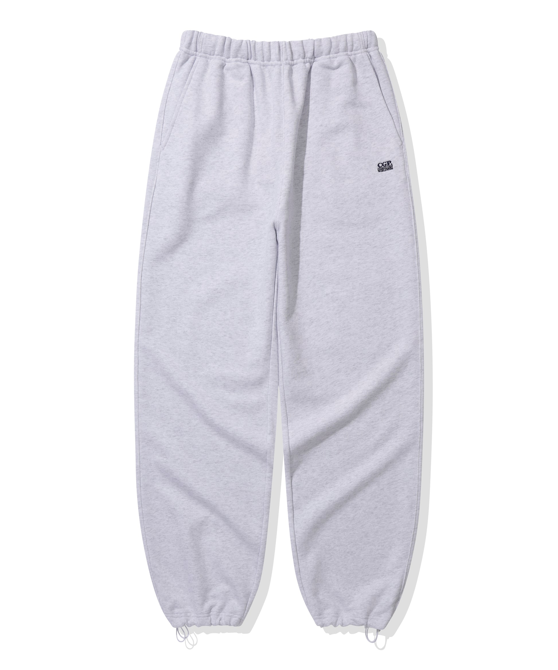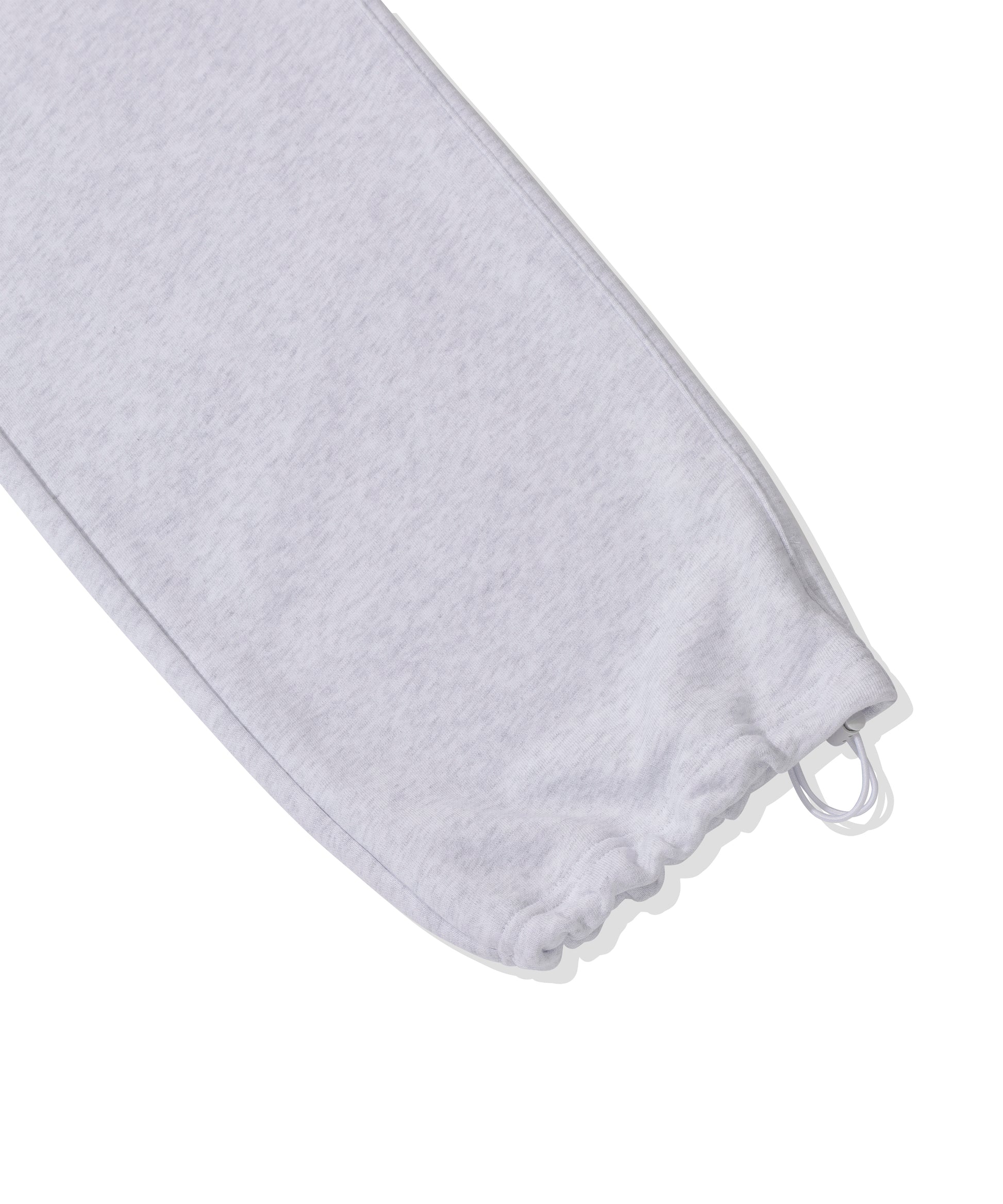 テンター、ダンブル加工で洗濯後の変形を最小限に抑え、スタンダードフィットのスウェットとワイドフィットのパンツでセットアップを構成。